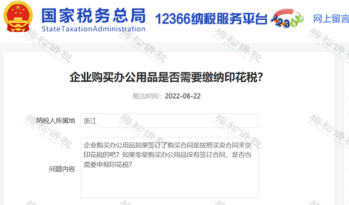 2、辦公用品的買賣合同屬于印花稅的應(yīng)稅憑證,公司從超市等單位手中購買辦公用品的,無論簽沒簽合同,都需要繳納印花稅。