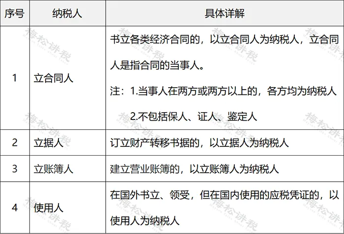 3、書立應(yīng)稅合同的當(dāng)事人(對憑證有直接權(quán)利義務(wù)關(guān)系)是印花稅的納稅人,但合同的擔(dān)保人、證人、鑒定人不屬于立合同人,不繳納印花稅。